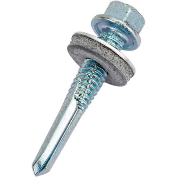 Саморез кровельный 6,3х38 мм с увеличенным сверлом РТ-5 15 мм и EPDM шайбой оцинкованный